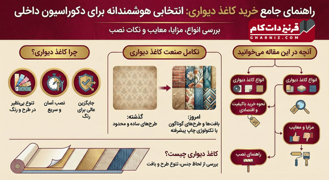 کاغذدیواری یکی از پرطرفدارترین پوشش های دیواری در صنعت دکوراسیون داخلی است که به دلیل تنوع بالا در طرح و رنگ ، نصب آسان و سریع جایگزینی عالی برای رنگ و دیوارپوش ها محسوب می شود.در گذشته کاغذ دیواری ها در طرح ساده و محدودی تولید می شدند اما امروزه با پیشرفت تکنولوژی در صنعت چاپ و تولید کاغذ دیواری ، طرح ها و بافت های گوناگونی تولید شده اند که هر کدام کاربرد خاصی دارند و شما می توانید با استفاده از تنوع بی نظیر ، کاغذ دیواری مطابق سلیقه خود را انتخاب کنید و دکوراسیون داخلی منزل و یا محل کار خود را شکل دهید.در این مقاله سعی میکنیم تا انواع کاغذ دیواری های موجود در بازار ایران،نحوه خرید کاغذ دیواری باکیفیت و اقتصادی ،مزایا و معایب کاغذ دیواری نسبت به سایر دیوارپوش ها و نحوه نصب آن را با هم بررسی کنیم.